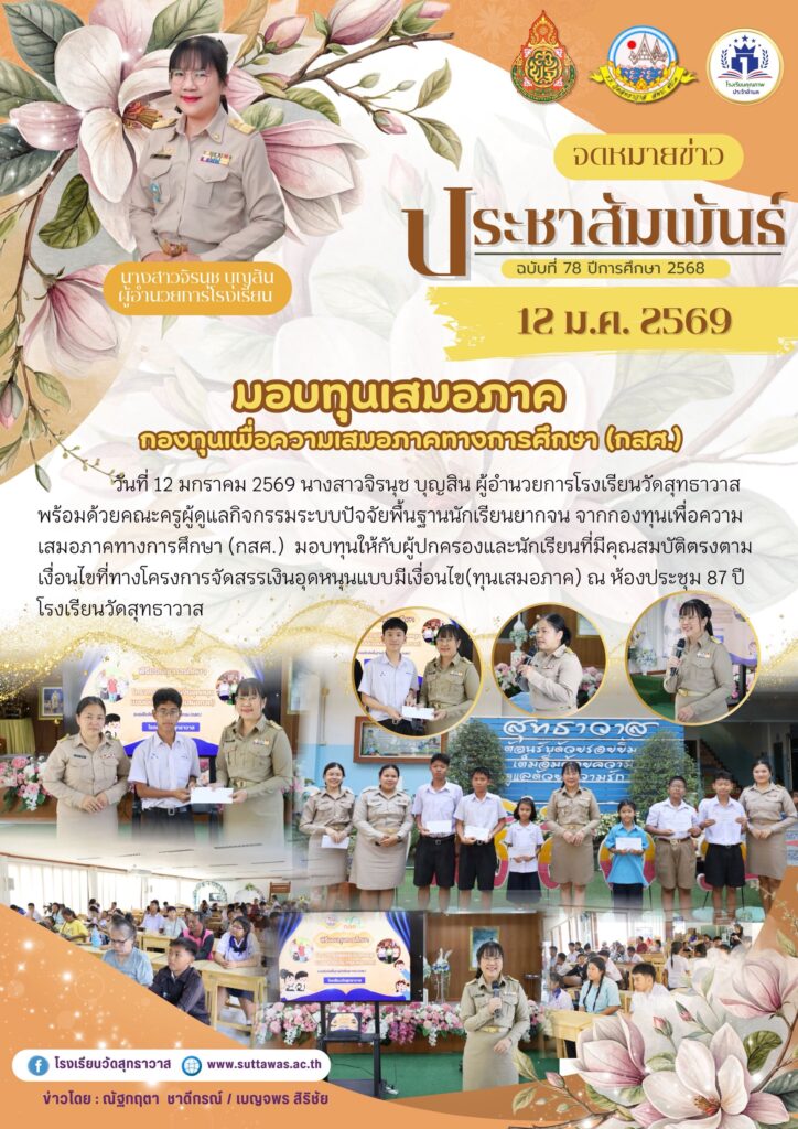 Home2026มกราคม14โรงเรียนวัดสุทธาวาสมอบทุนเสมอภาคจากกองทุนเพื่อความเสมอภาคทางการศึกษา (กสศ.) ให้กับนักเรียน โรงเรียนวัดสุทธาวาสมอบทุนเสมอภาคจากกองทุนเพื่อความเสมอภาคทางการศึกษา (กสศ.) ให้กับนักเรียน / กิจกรรมของโรงเรียน / By Nataya Phosri