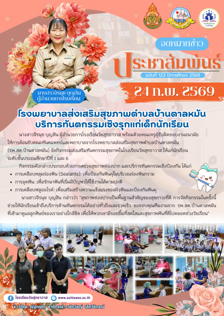 Home2026กุมภาพันธ์25โรงพยาบาลส่งเสริมสุขภาพตำบลบ้านตาลหมันบริการทันตกรรมเชิงรุกแก่นักเรียนโรงเรียนวัดสุทธาวาส โรงพยาบาลส่งเสริมสุขภาพตำบลบ้านตาลหมันบริการทันตกรรมเชิงรุกแก่นักเรียนโรงเรียนวัดสุทธาวาส / กิจกรรมของโรงเรียน / By Nataya Phosri