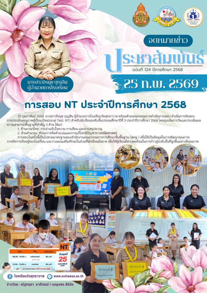 โรงเรียนวัดสุทธาวาสดำเนินการสอบ NT สำหรับนักเรียนชั้นประถมศึกษาปีที่ 3 ประจำปีการศึกษา 2568 กิจกรรมของโรงเรียน / Nataya Phosri โรงเรียนวัดสุทธาวาสดำเนินการสอบ NT สำหรับนักเรียนชั้นประถมศึกษาปีที่ 3 ประจำปีการศึกษา 2568 Read More »