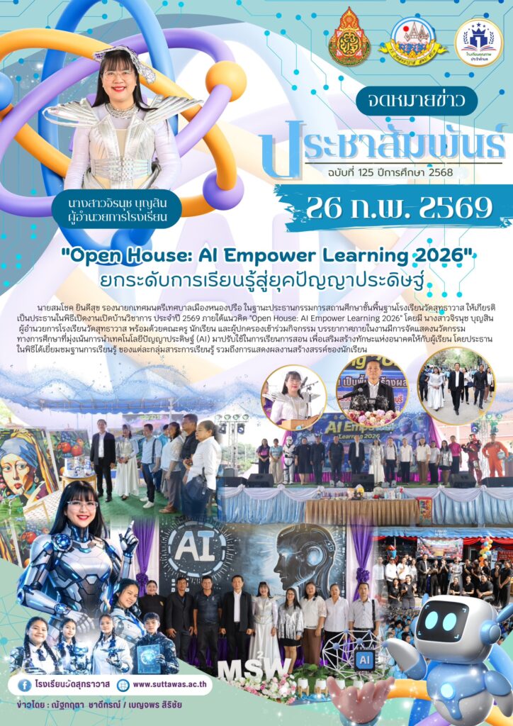 โรงเรียนวัดสุทธาวาสจัดกิจกรรมเปิดบ้านวิชาการ “Open House Empower Learning 2026” ยกระดับการเรียนรู้สูู่ยุคปัญญาประดิษฐ์ กิจกรรมของโรงเรียน / Nataya Phosri โรงเรียนวัดสุทธาวาสจัดกิจกรรมเปิดบ้านวิชาการ “Open House Empower Learning 2026” ยกระดับการเรียนรู้สูู่ยุคปัญญาประดิษฐ์ Read More »