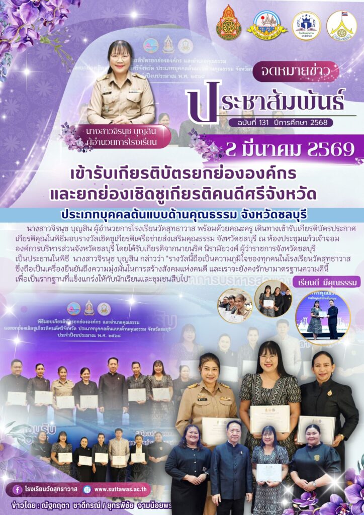 โรงเรียนวัดสุทธาวาสเข้ารับรางวัลเชิดชูเกียรติเครือข่ายส่งเสริมคุณธรรม จังหวัดชลบุรี กิจกรรมของโรงเรียน / Nataya Phosri โรงเรียนวัดสุทธาวาสเข้ารับรางวัลเชิดชูเกียรติเครือข่ายส่งเสริมคุณธรรม จังหวัดชลบุรี Read More »