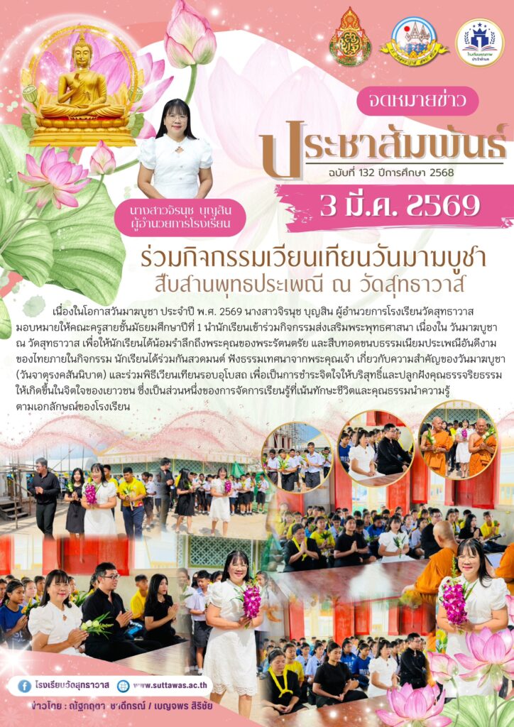 โรงเรียนวัดสุทธาวาสร่วมกิจกรรมมาฆบูชา มรรคาแห่งสันติสุข พร้อมเข้ารับรางวัล กิจกรรมของโรงเรียน / Nataya Phosri โรงเรียนวัดสุทธาวาสร่วมกิจกรรมมาฆบูชา มรรคาแห่งสันติสุข พร้อมเข้ารับรางวัล Read More »