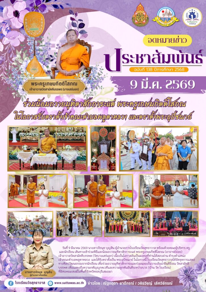 Home2026มีนาคม12โรงเรียนวัดสุทธาวาสร่วมน้อมถวายมุทิตาสักการะแด่ พระครูเกษมกิตติโสภณ ในโอกาสรับตราตั้งเจ้าคณะตำบลพลูตาหลวง และตราตั้งพระอุปัชฌาย์ โรงเรียนวัดสุทธาวาสร่วมน้อมถวายมุทิตาสักการะแด่ พระครูเกษมกิตติโสภณ ในโอกาสรับตราตั้งเจ้าคณะตำบลพลูตาหลวง และตราตั้งพระอุปัชฌาย์ / กิจกรรมของโรงเรียน / By Nataya Phosri