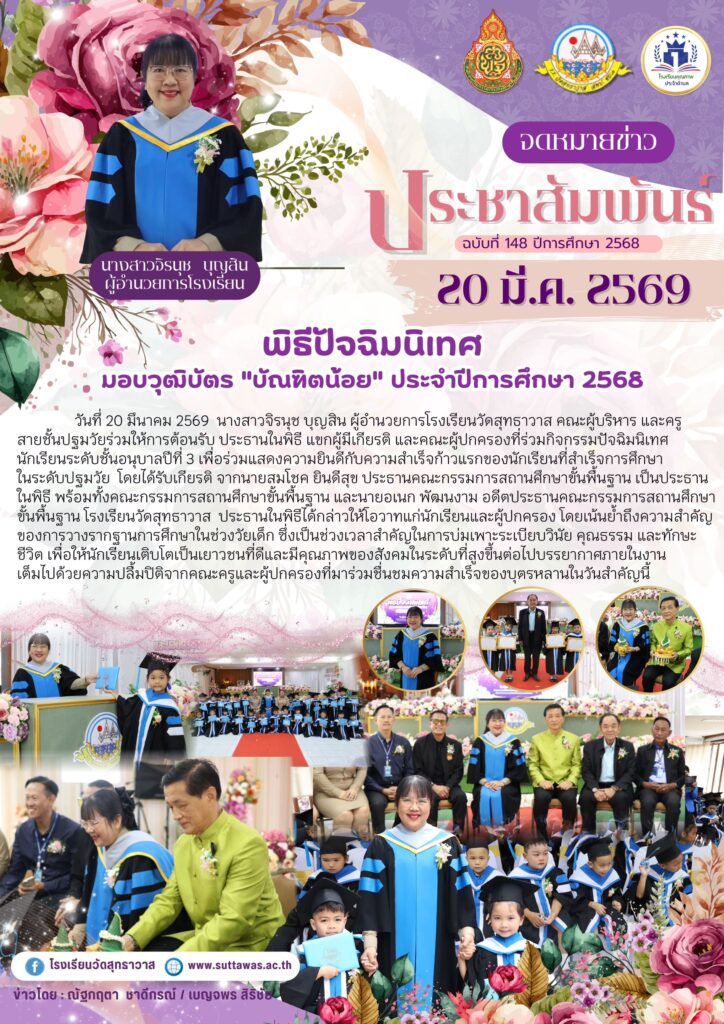 Home2026มีนาคม21พิธีปัจฉิมนิเทศ มอบวุฒิบัตร “บัณฑิตน้อย” ระดับชั้นอนุบาล 3 ประจำปีการศึกษา 2568 พิธีปัจฉิมนิเทศ มอบวุฒิบัตร “บัณฑิตน้อย” ระดับชั้นอนุบาล 3 ประจำปีการศึกษา 2568 / กิจกรรมของโรงเรียน / By Nataya Phosri