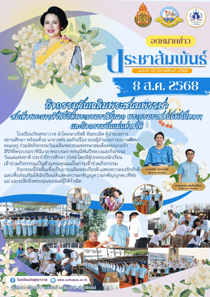 โรงเรียนวัดสุทธาวาสจัดกิจกรรมวันเฉลิมพระชนมพรรษา สมเด็จพระนางเจ้าสิริกิติ์พระบรมราชินีนาถ พระบรมราชชนนีพันปีหลวงและวันแม่แห่งชาติ