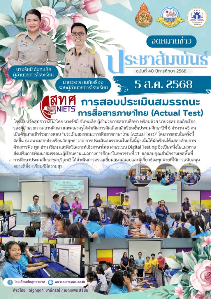 โรงเรียนวัดสุทธาวาสสอบคัดกรองความสามารถในการอ่านเเละเขียนภาษาไทย ภาคเรียนที่ 1/2568