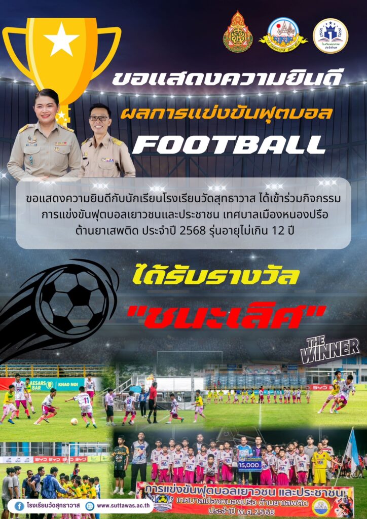 โรงเรียนวัดสุทธาวาส ได้รับรางวัล “ชนะเลิศ” การแข่งขันฟุตบอลเยาวชนและประชาชน เทศบาลเมืองหนองปรือ ต้านยาเสพติด ประจำปี 2568