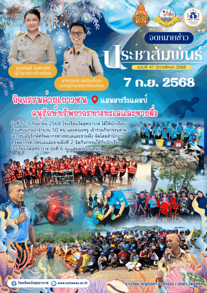 โรงเรียนวัดสุทธาวาสเข้าร่วมกิจกรรมค่ายเยาวชนอนุรักษ์ทรัพยากรทางทะเลและชายฝั่ง