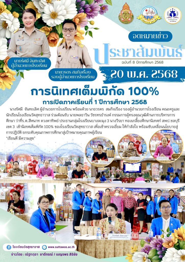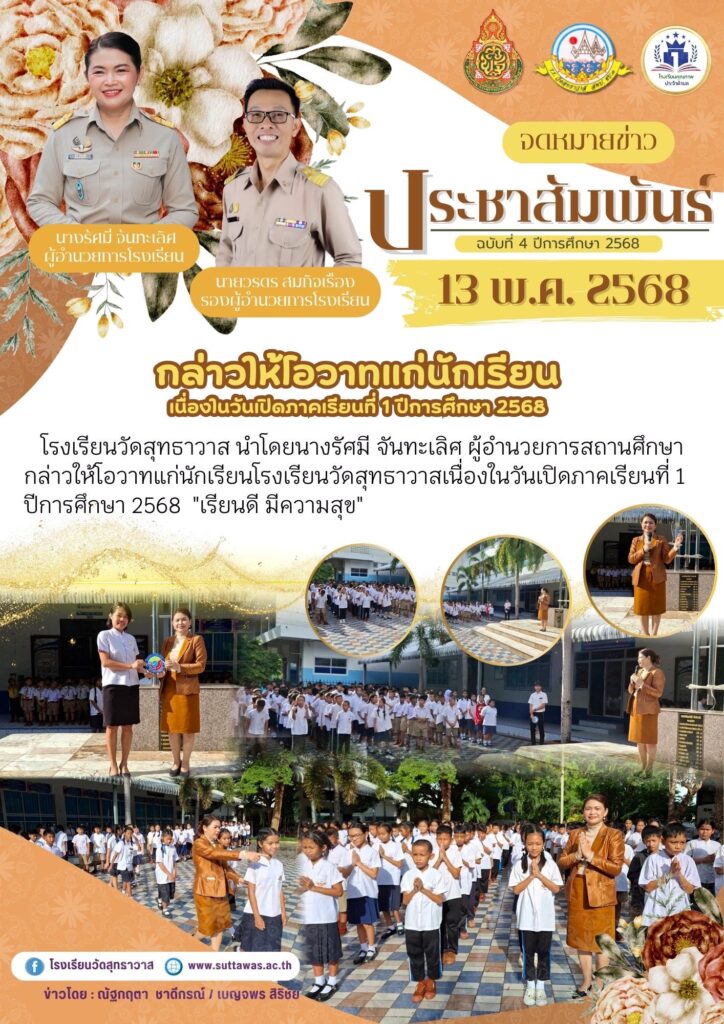 ผู้อำนวยการโรงเรียนวัดสุทธาวาสกล่าวให้โอวาทแก่นักเรียน เนื่องในวันเปิดภาคเรียนที่ 1/2568