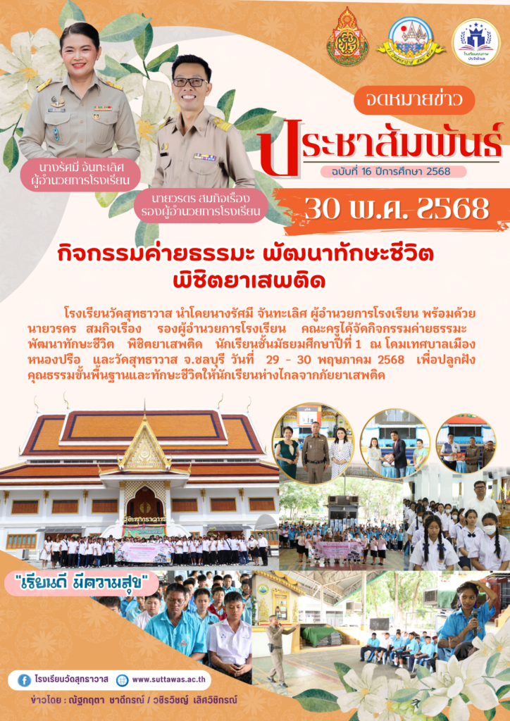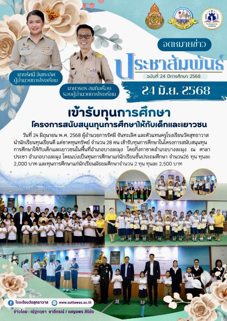 นักเรียนโรงเรียนวัดสุทธาวาสเข้ารับทุนการศึกษาโครงการสนับสนุนทุนการศึกษาให้กับเด็กและเยาวชนในเขตพื้นที่อำเภอบางละมุง